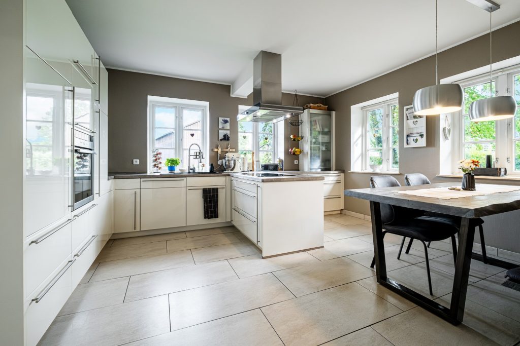 Eine Küche in der sich Familie und Freunde treffen. Moderne und hochwertige Materialien laden ein zum kochen und backen.
